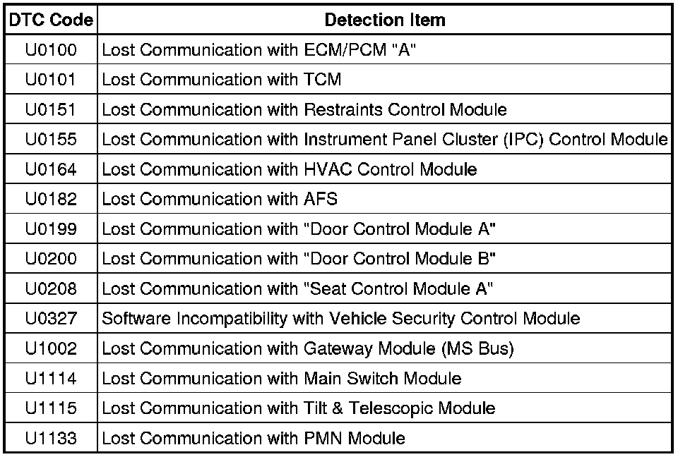3. DTC TABLE BY ECU