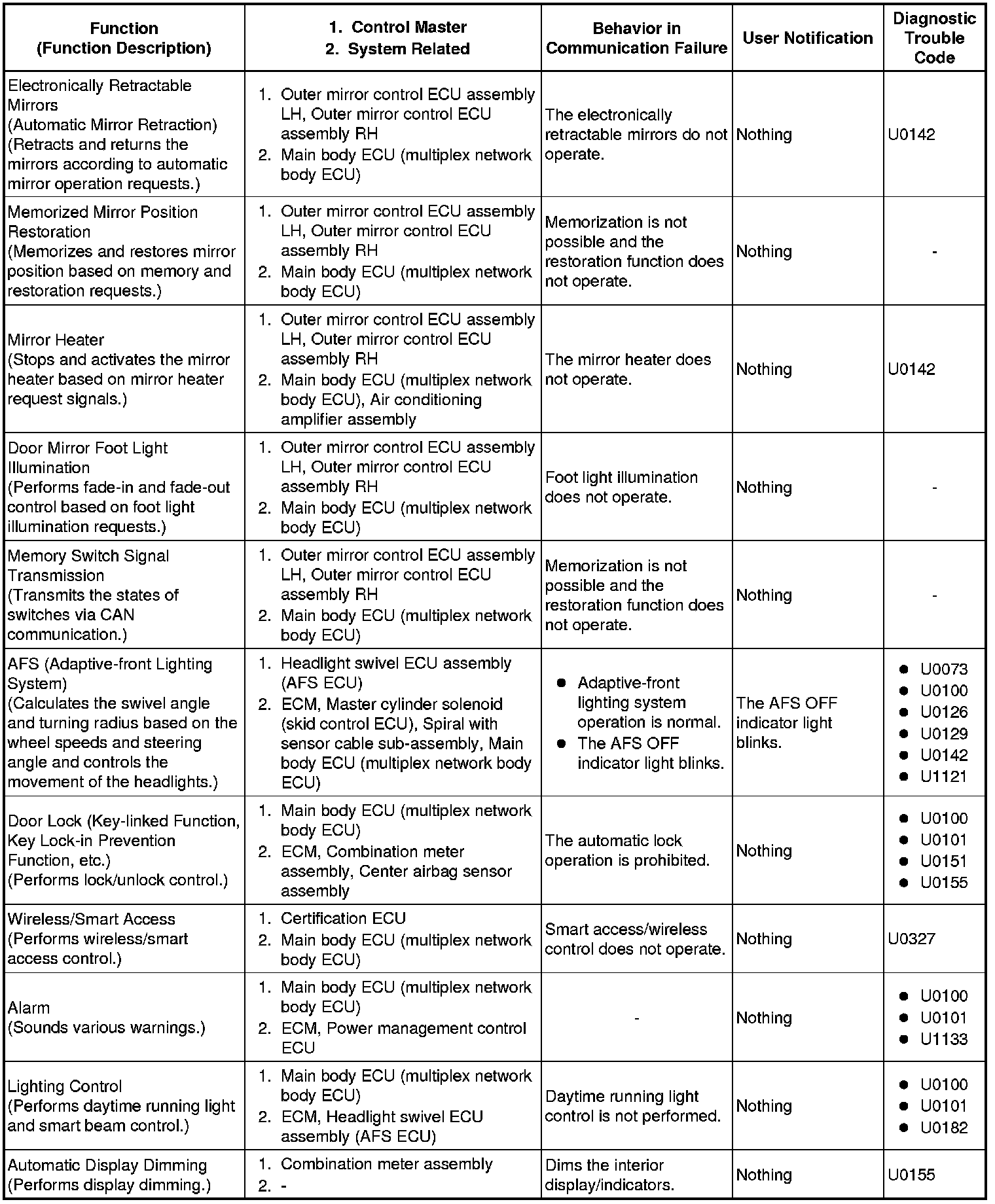 NETWORKING: CAN COMMUNICATION SYSTEM: FAIL-SAFE CHART
