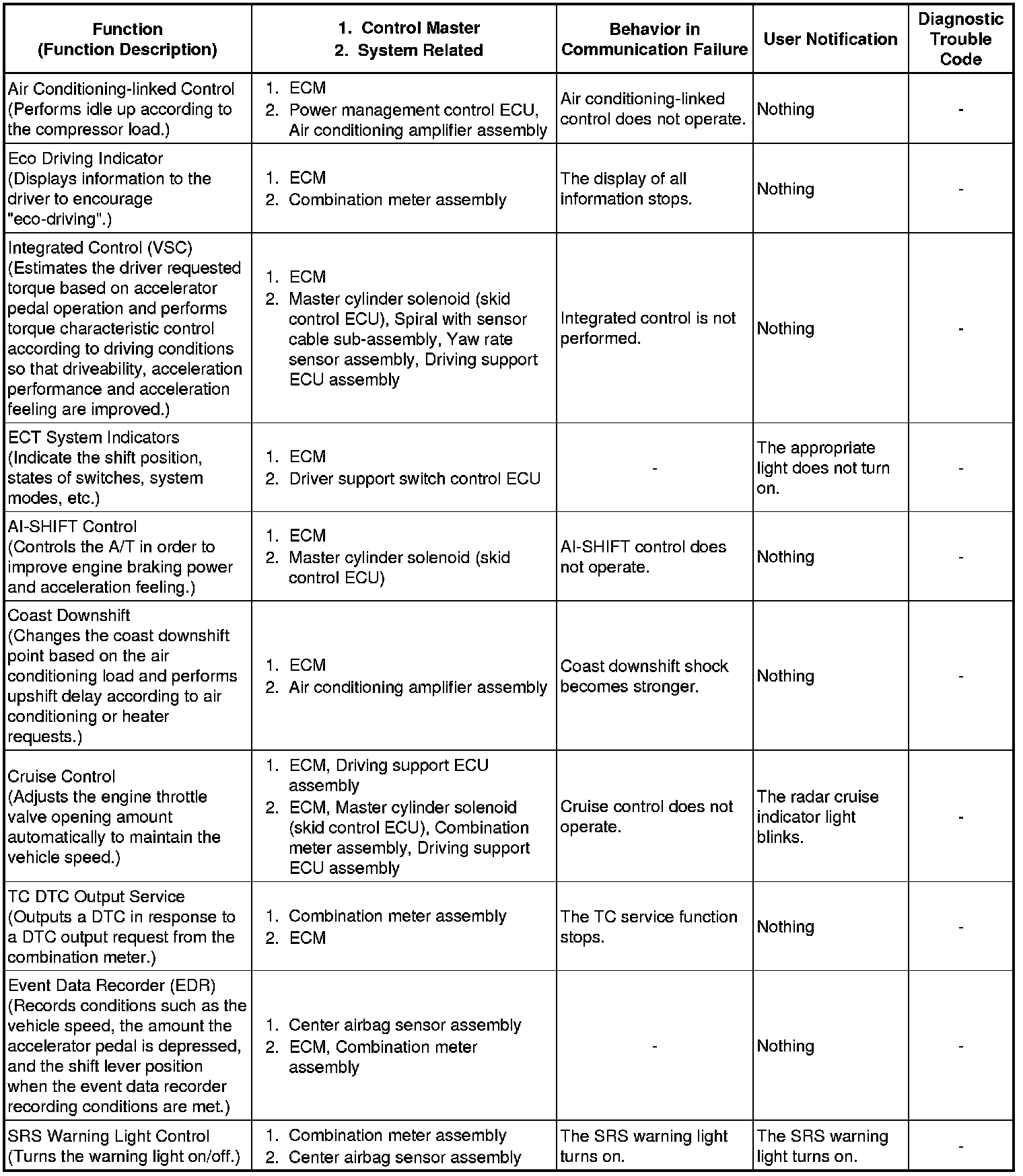 (b) Effects on each system when communication is impossible (for further details, see the pages for each system).