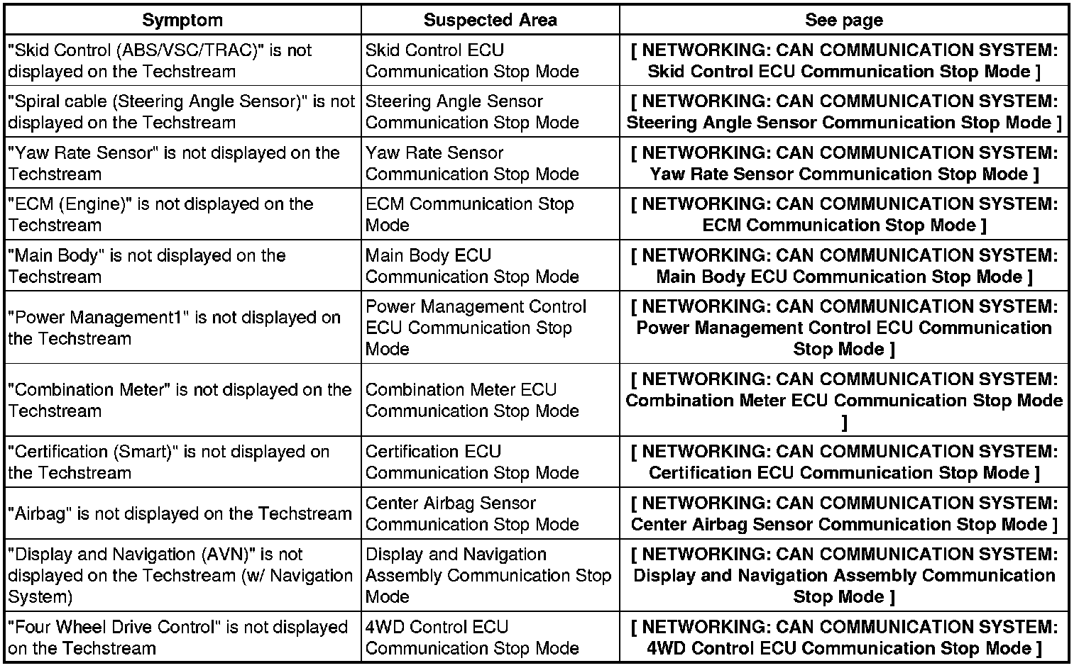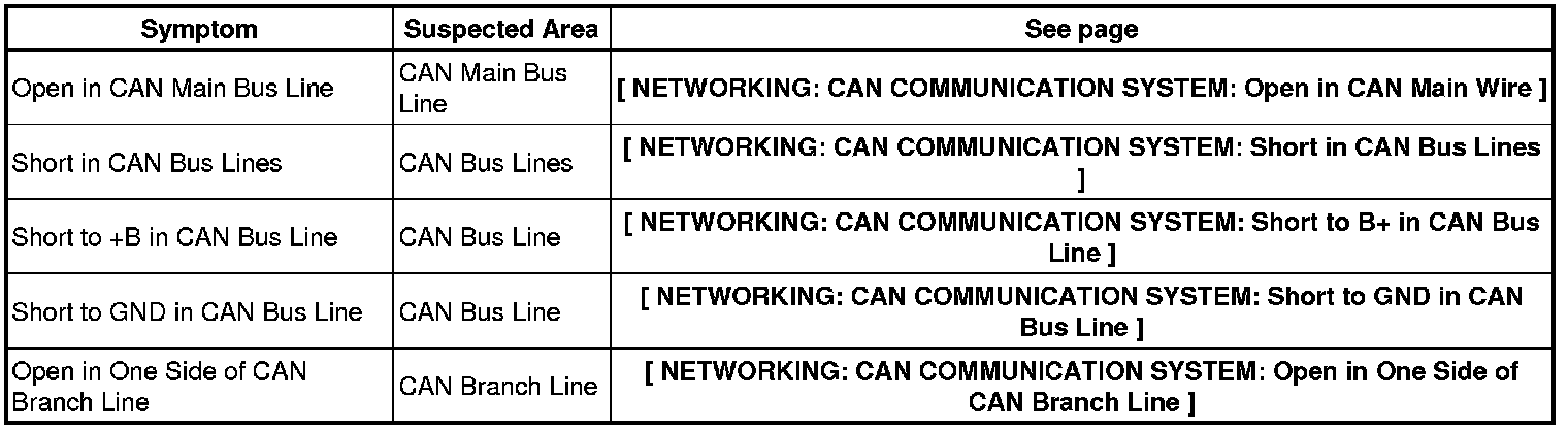 NETWORKING: CAN COMMUNICATION SYSTEM: PROBLEM SYMPTOMS TABLE