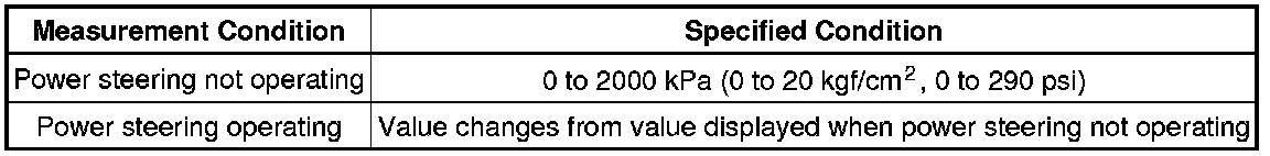 If the result is not as specified, check for DTCs Reading and Clearing Diagnostic Trouble Codes. If the power steering system inspection results are normal and a DTC is not output, replace the power steering oil pressure switch.