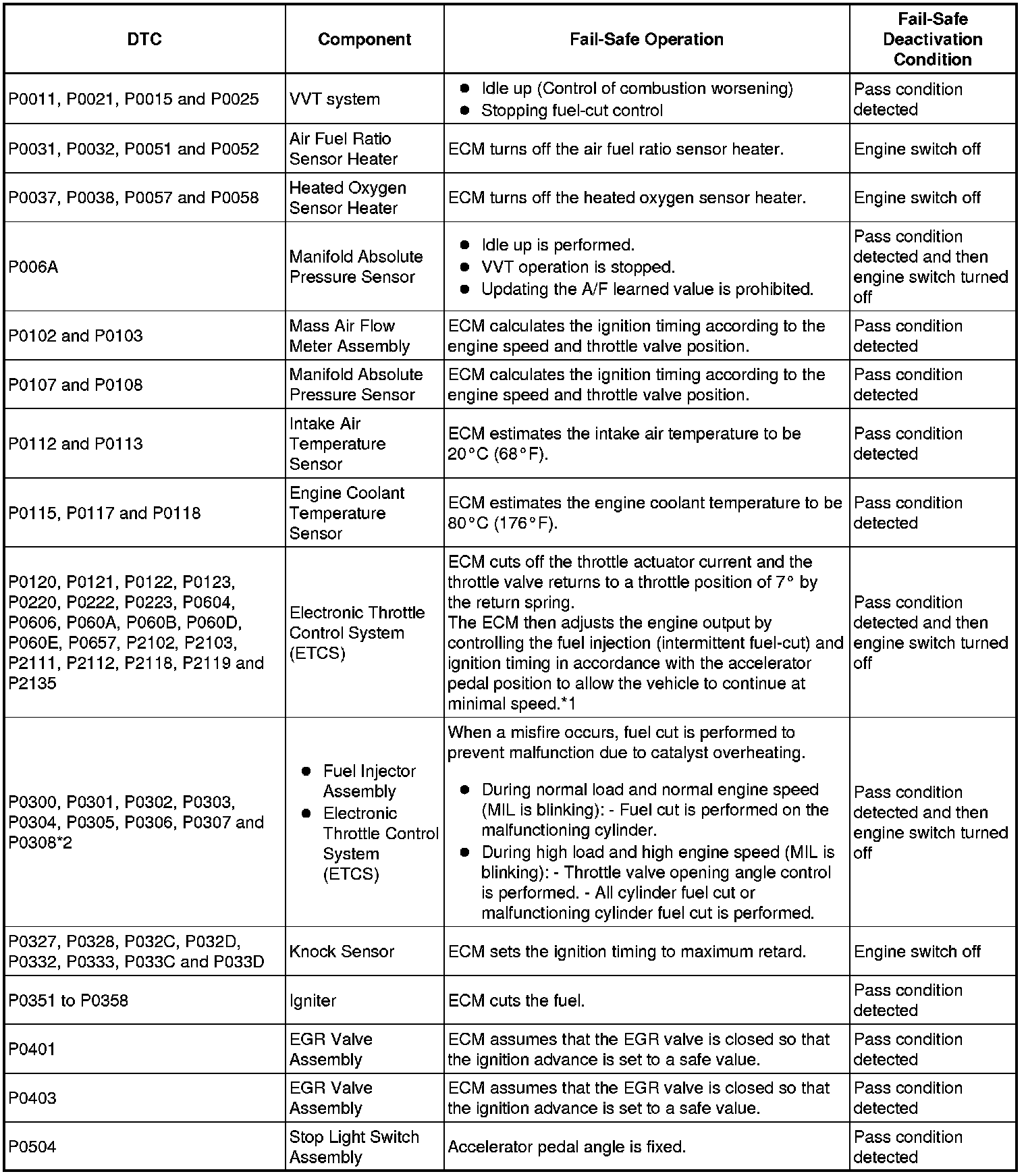 * *2: Misfire related fail-safe operations occur when catalyst overheat malfunctions occur.