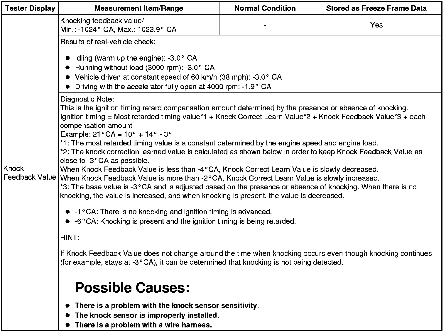 Knock Feedback Value