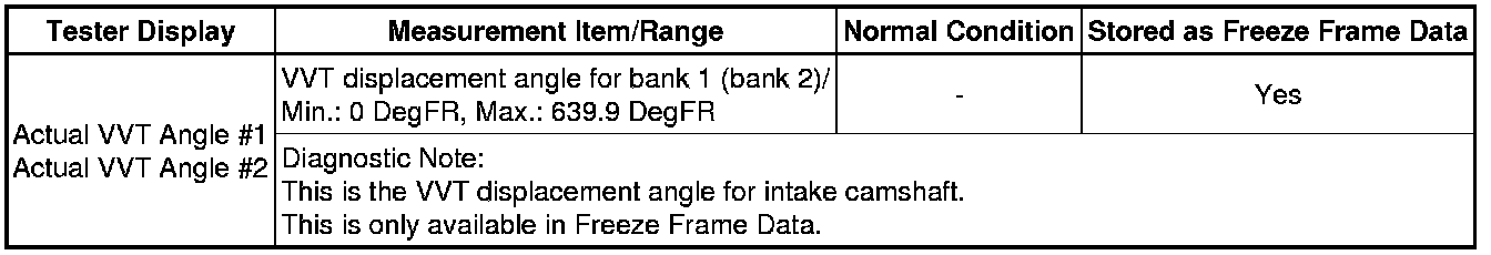 Actual VVT Angle #1, #2