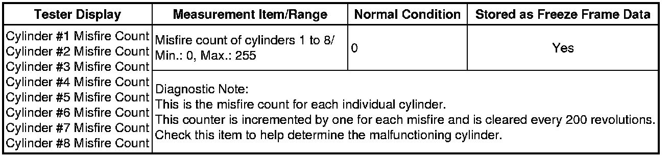 Cylinder #1 Misfire Count to Cylinder #8 Misfire Count