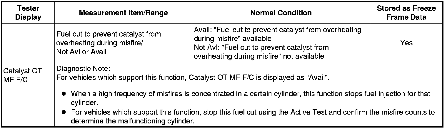 * If the display of the Data List item Catalyst OT MF F/C item is Avail, perform this Active Test as described below.