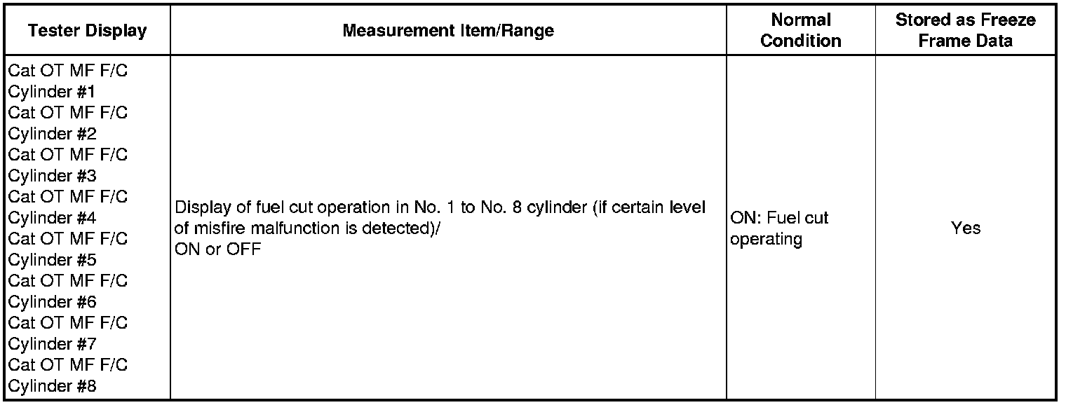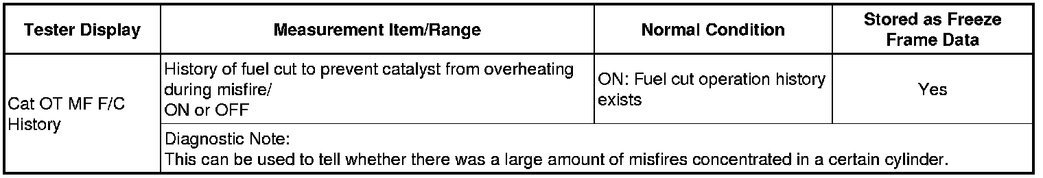 * If the display of the Data List item Catalyst OT MF F/C item is Not Avl, perform this Active Test with the vehicle stopped and the engine idling.