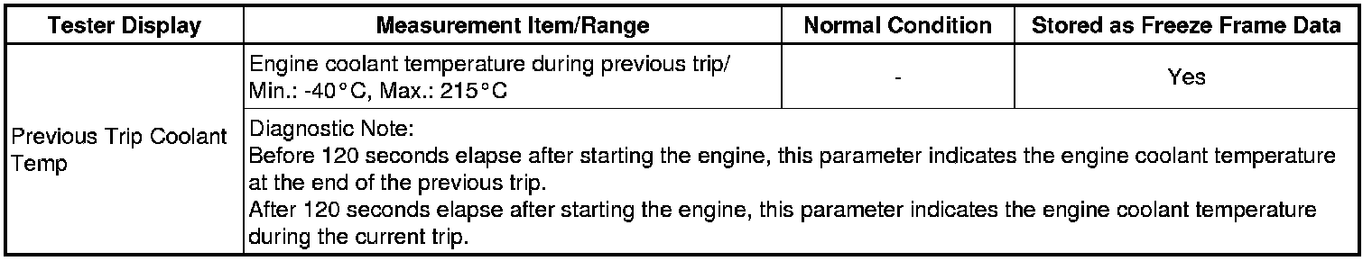 Previous Trip Coolant Temp