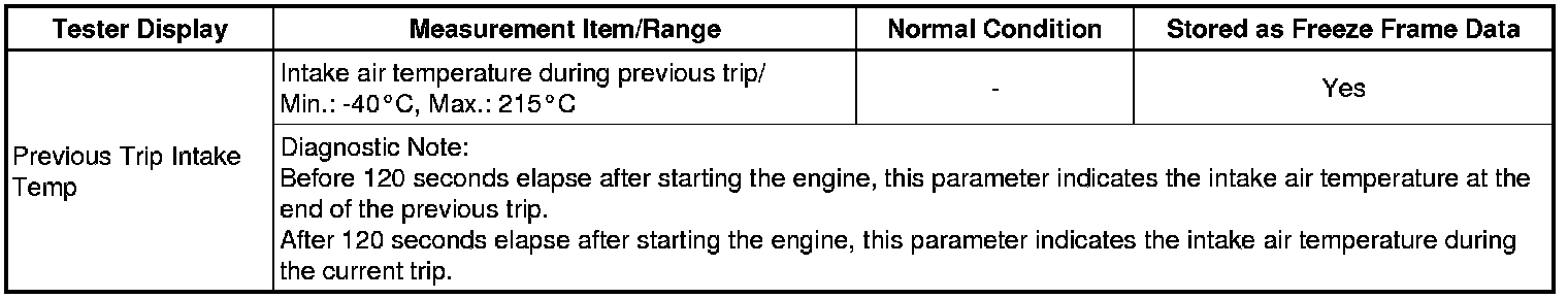 Previous Trip Intake Temp