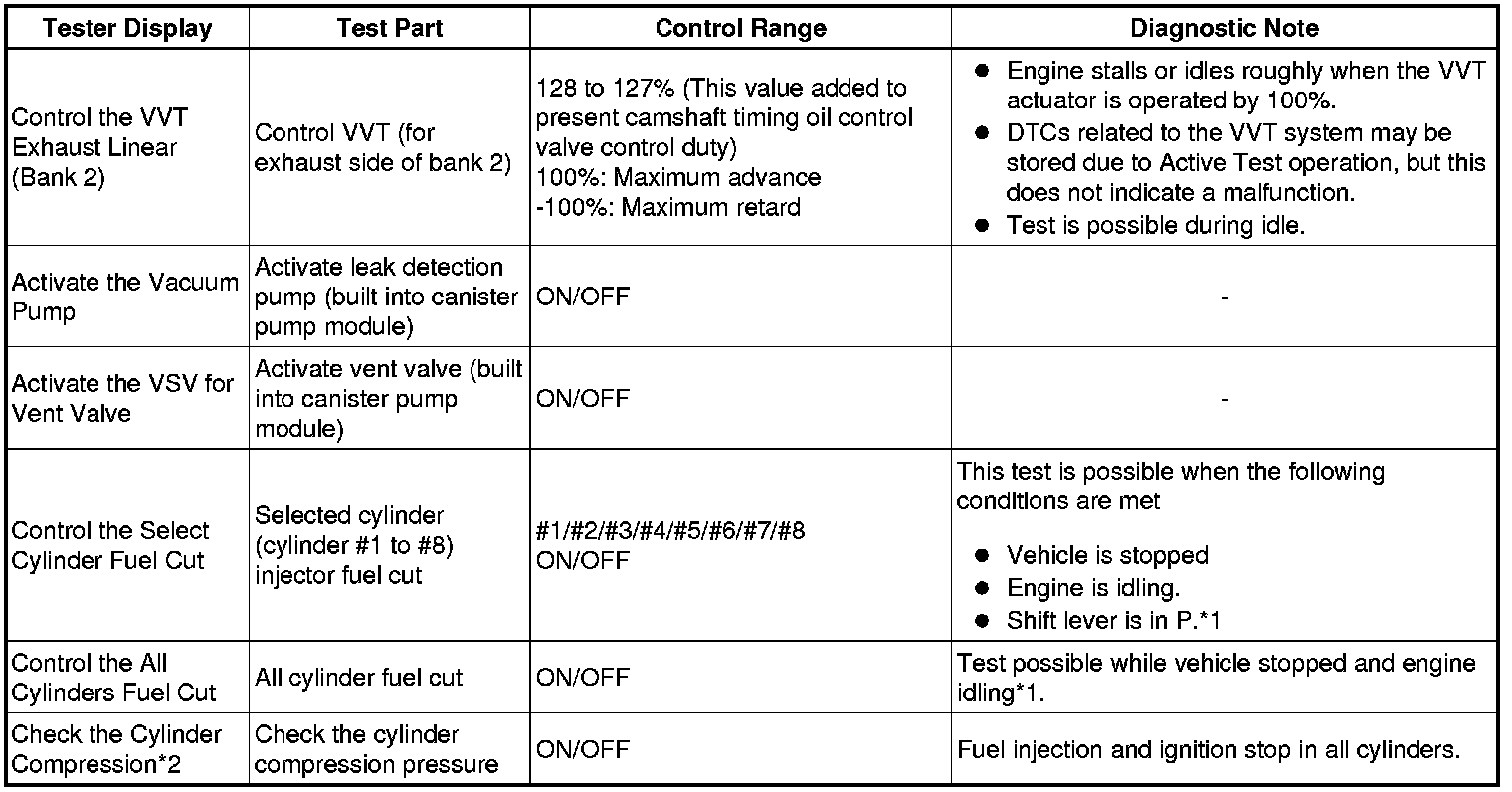 * The Control the VVT Linear Active Test considers the value of VVT Aim Angle to be 0 and raises or lowers the duty ratio with respect to VVT Aim Angle.