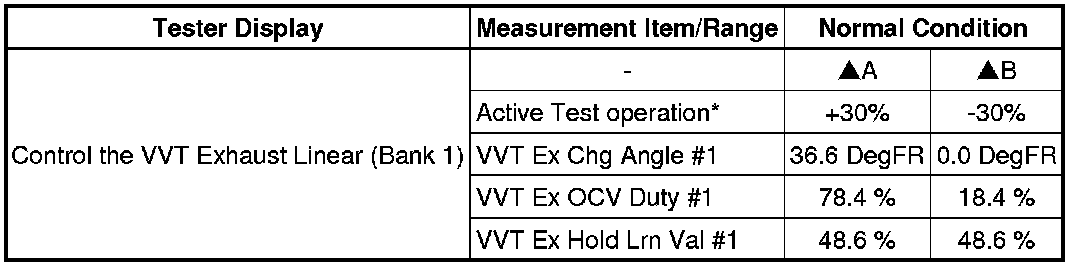 * *: Change the control value for Control the VVT Exhaust Linear to +30% or -30% in increments of 5%.