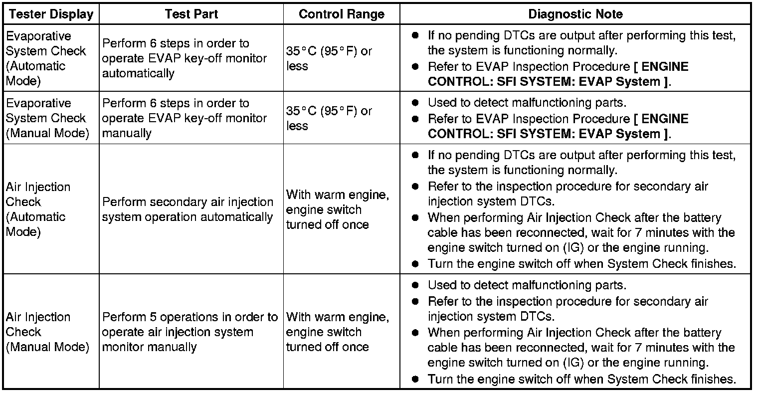 (e) Perform the System Check by referring to the table below.