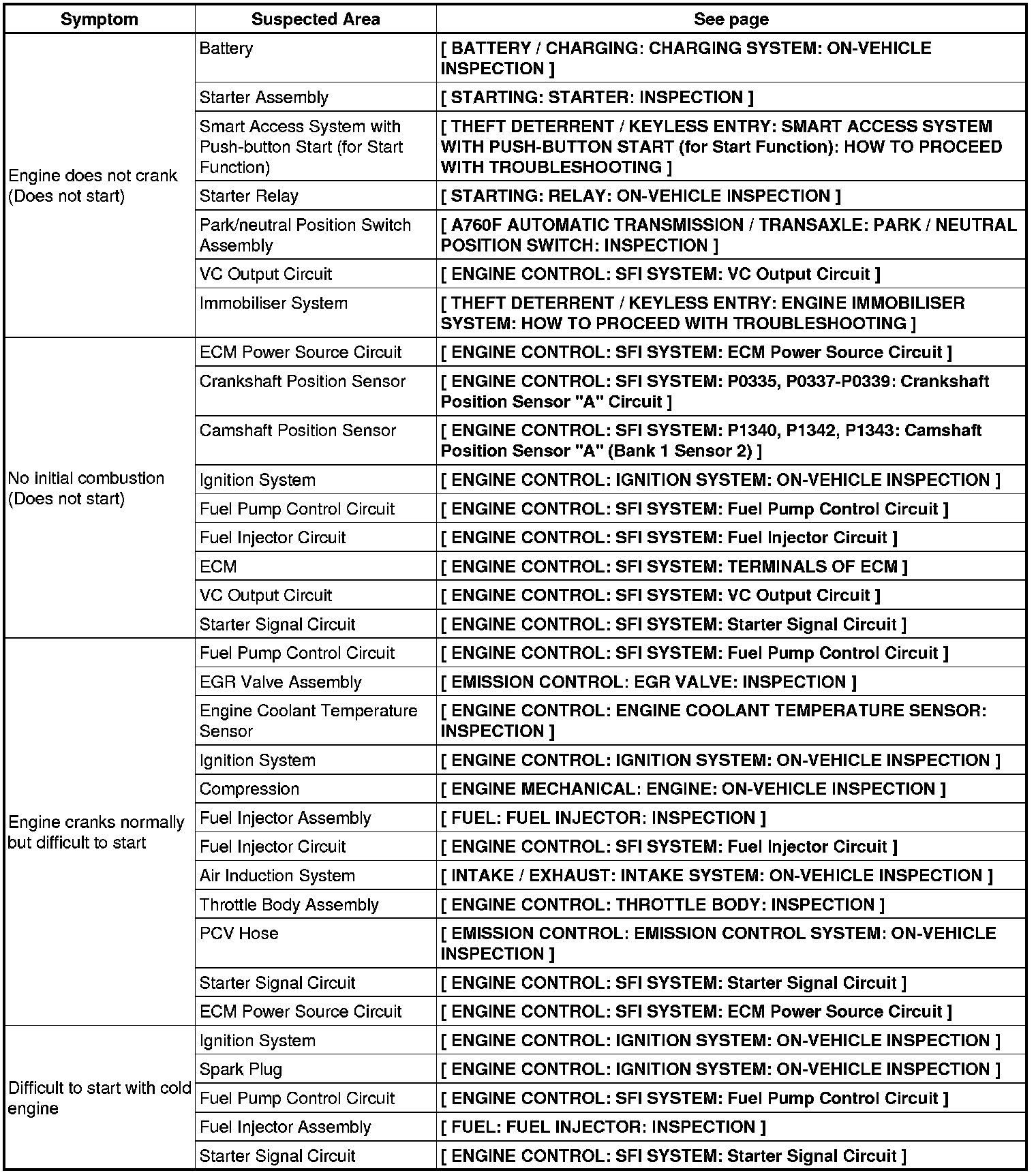 1UR-FE ENGINE CONTROL: SFI SYSTEM: PROBLEM SYMPTOMS TABLE