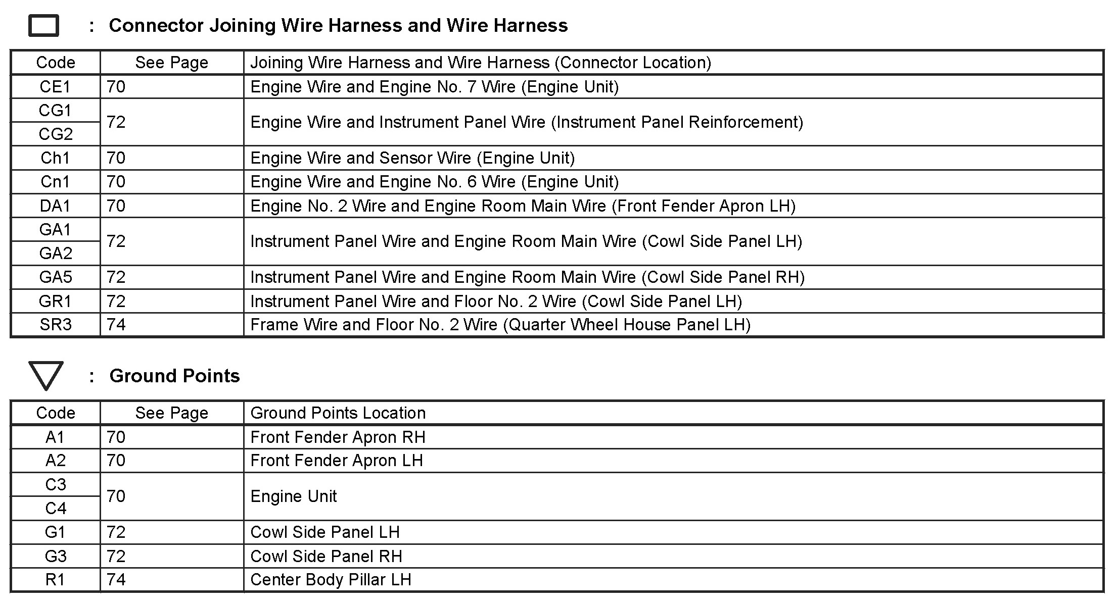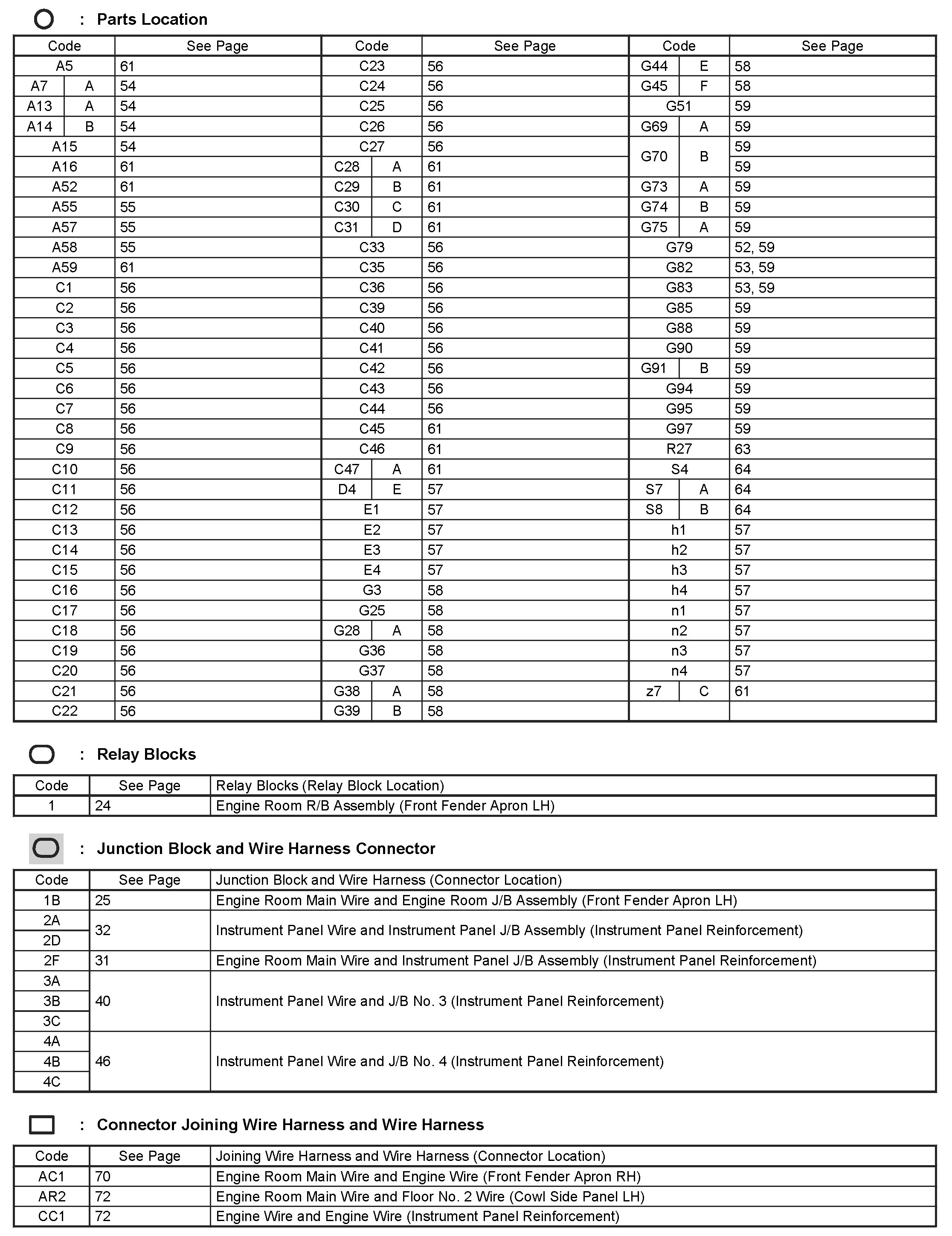 Connector Views: Diagrams of the connectors referred to within these diagrams can be found at Connector Views by Connector Number.