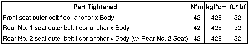 SPECIFICATIONS: INTERIOR PANELS / TRIM: TORQUE SPECIFICATIONS