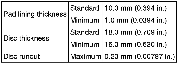SPECIFICATIONS: BRAKE (REAR): SERVICE DATA