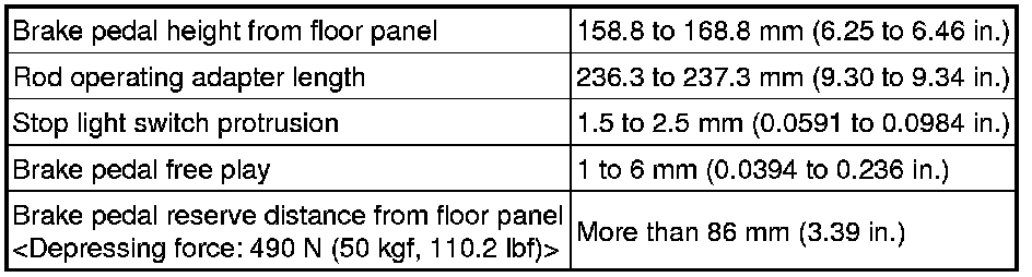 SPECIFICATIONS: BRAKE SYSTEM (OTHER): SERVICE DATA
