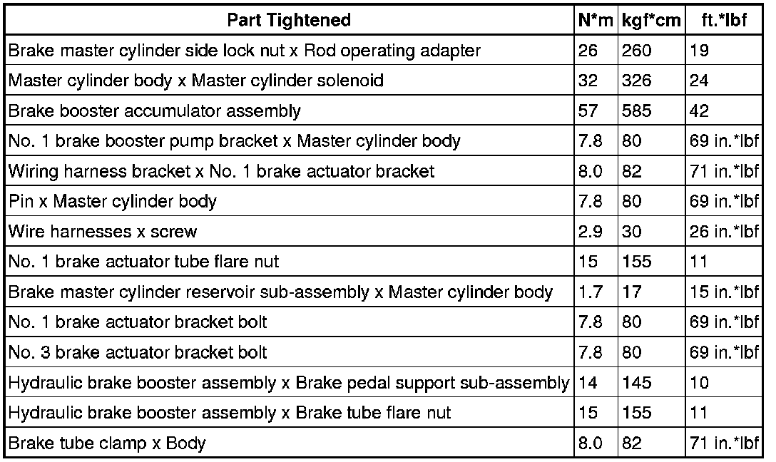SPECIFICATIONS: BRAKE SYSTEM (OTHER): TORQUE SPECIFICATIONS