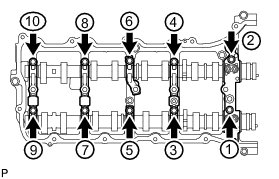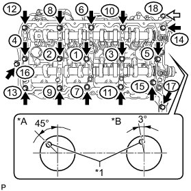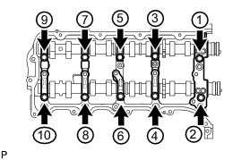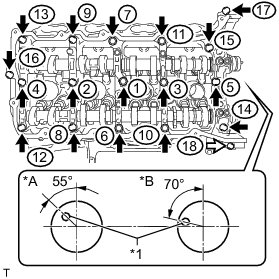 Install the camshaft housing, and then install the 18 bolts in the order shown in the illustration