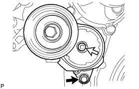 (e) Temporarily install the belt tensioner with the bolt and 6 mm hexagon bolt.