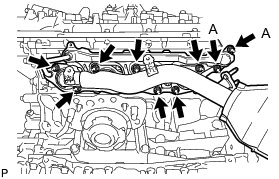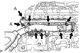 Temporarily install the No. 2 manifold stay with the 3 bolts.