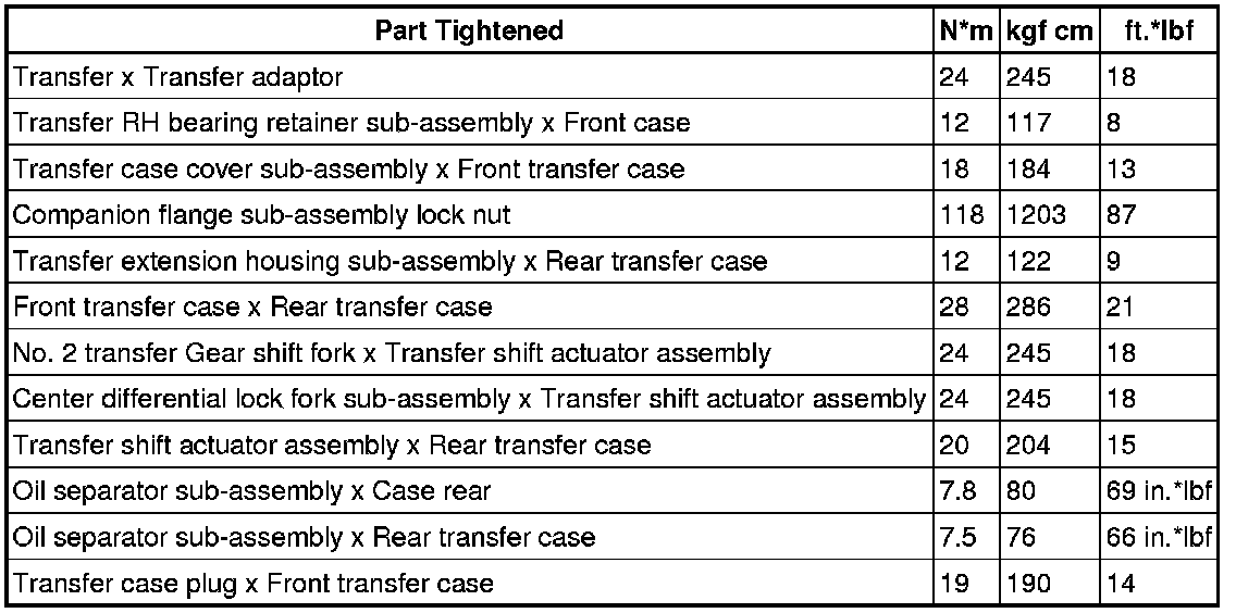 SPECIFICATIONS: VF4BM TRANSFER / 4WD / AWD: TORQUE SPECIFICATIONS