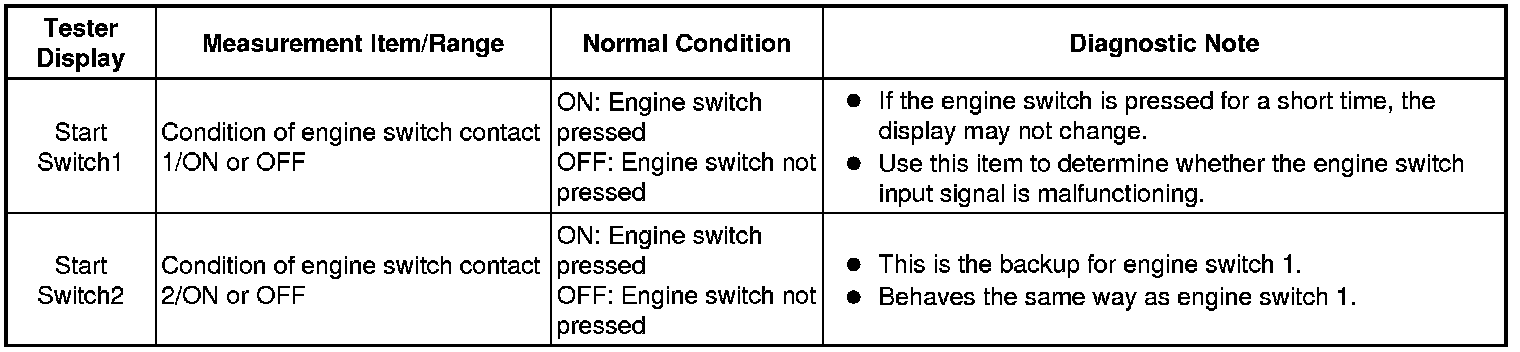 NG -- READ VALUE USING TECHSTREAM (START SWITCH 1, 2)