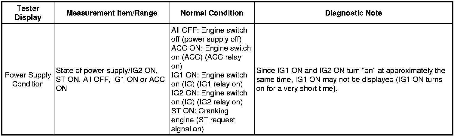 (e) Read the Data List and check that the display changes according to the changes in the power source mode when the engine switch is pushed.