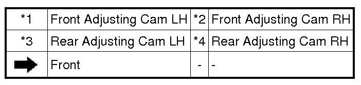 (4) As shown in the chart, read the distance from the marked point to 0, and adjust the front and/ or rear adjusting cams accordingly.