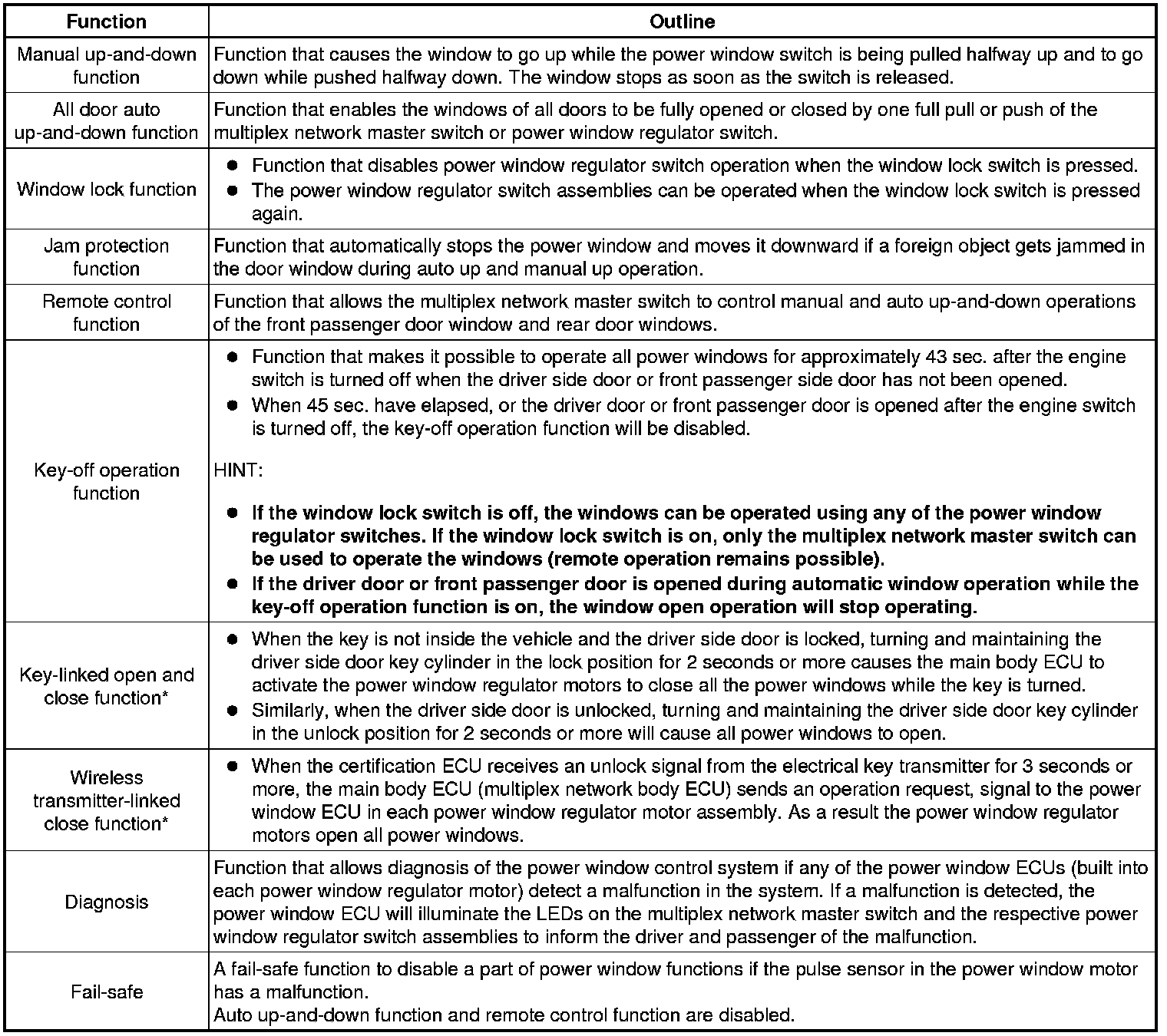 WINDOW / GLASS: POWER WINDOW CONTROL SYSTEM: SYSTEM DESCRIPTION