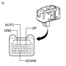 * If the result is not as specified, replace the rear power window regulator switch assembly.