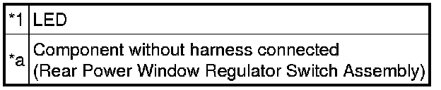 (1) Apply battery voltage to the rear power window regulator switch assembly and check that the LED illuminates.
