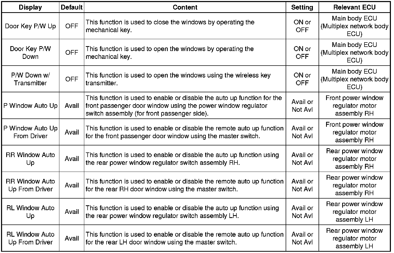 WINDOW / GLASS: POWER WINDOW CONTROL SYSTEM: CUSTOMIZE PARAMETERS