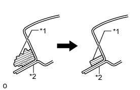 (1) On the contact surface of the vehicle body, use a knife to cut away excess adhesive as shown in the illustration.