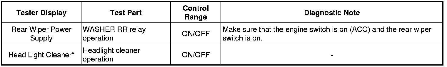 WIPER / WASHER: WIPER AND WASHER SYSTEM: DATA LIST / ACTIVE TEST