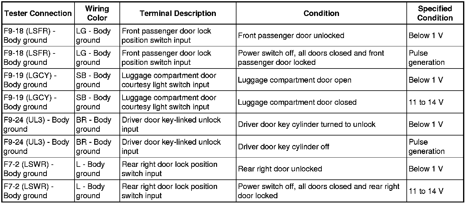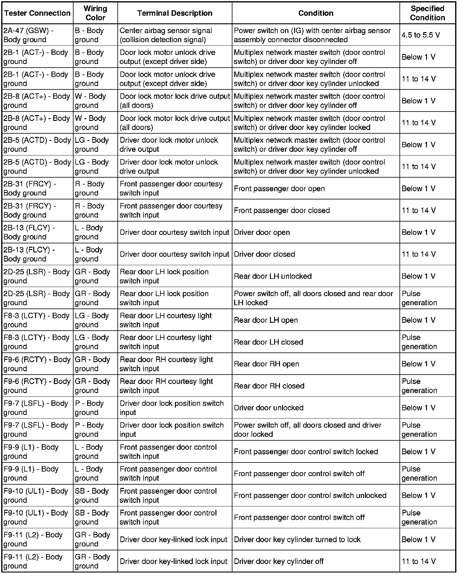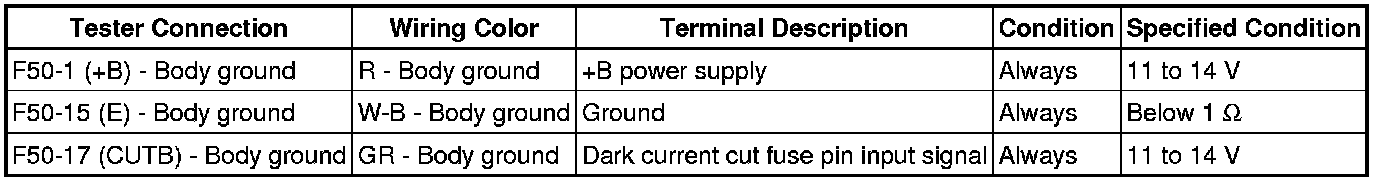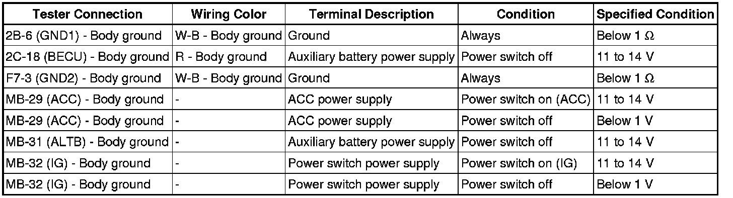 If the result is not as specified, the main body ECU (multiplex network body ECU) or instrument panel junction block assembly may have a malfunction.