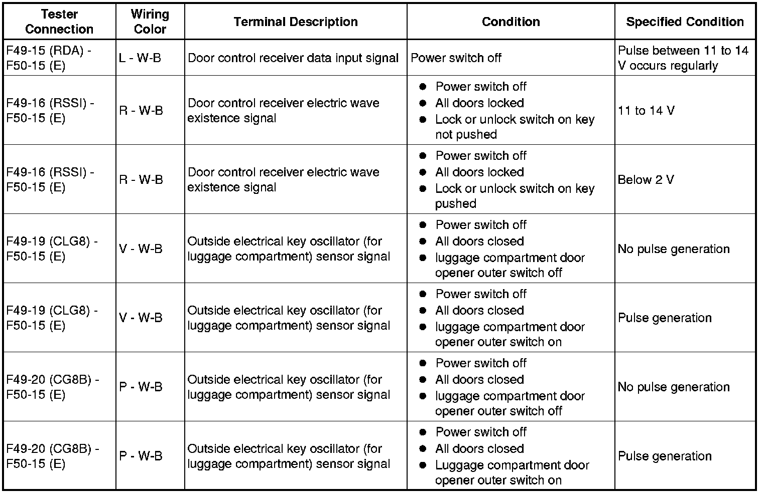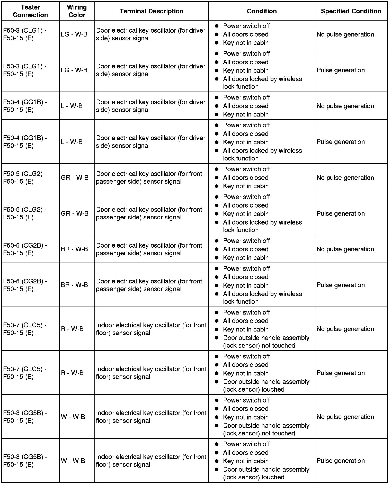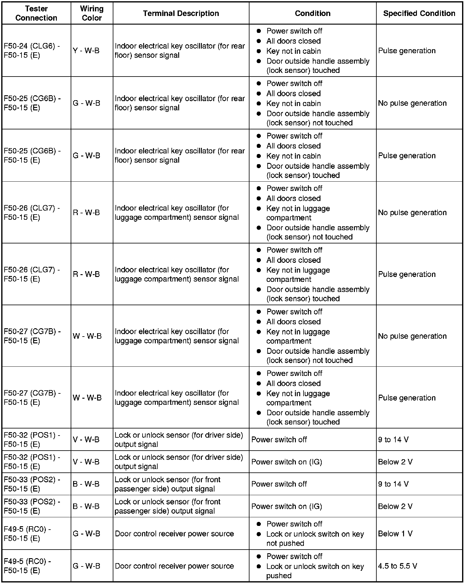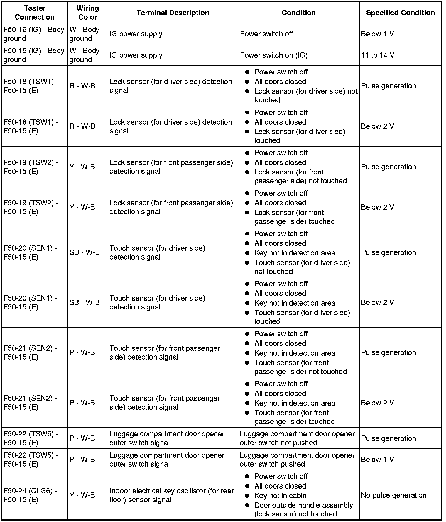 (d) Measure the voltage and check for pulses according to the value(s) in the table below.