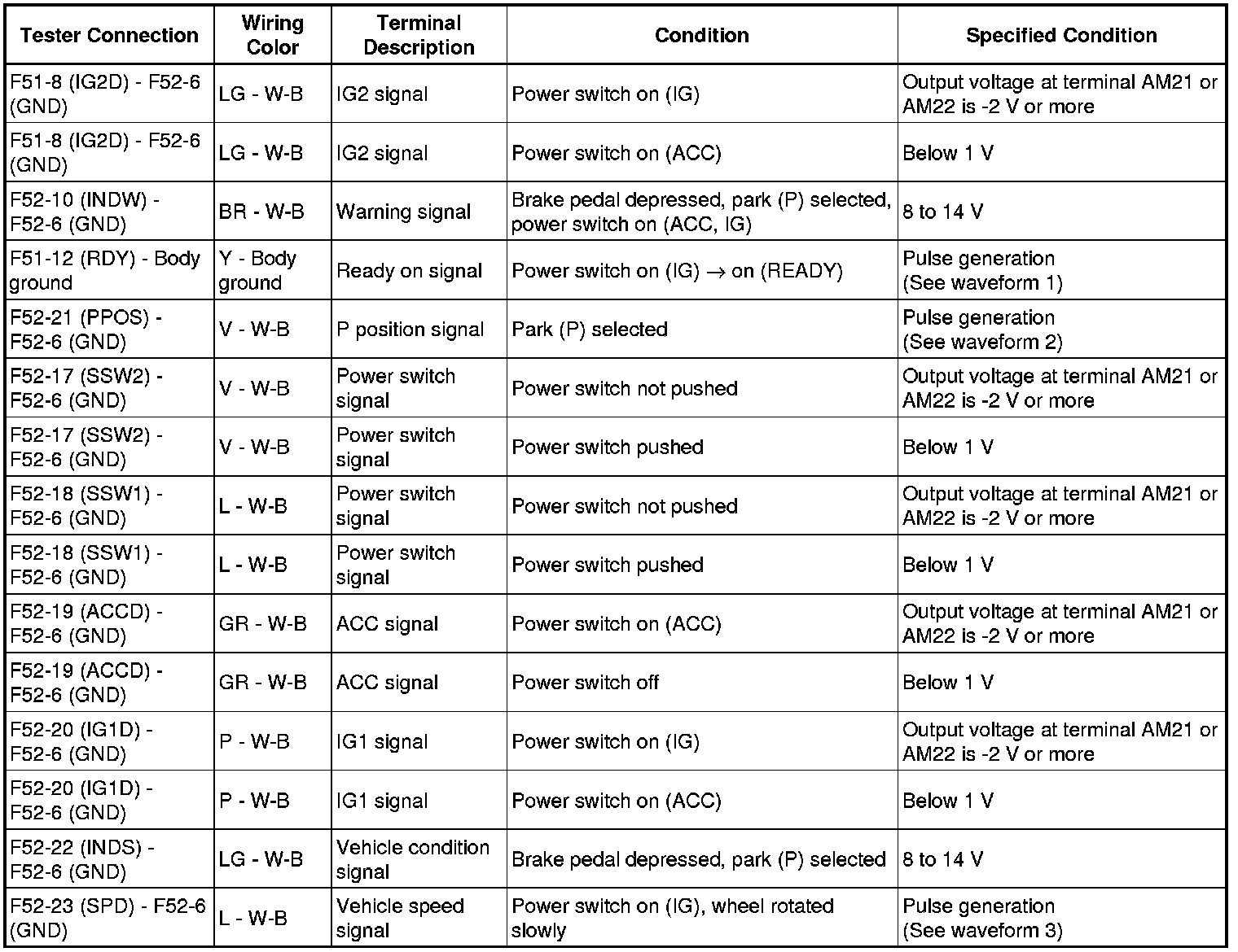 (d) Measure the voltage and check for pulses according to the value(s) in the table below.