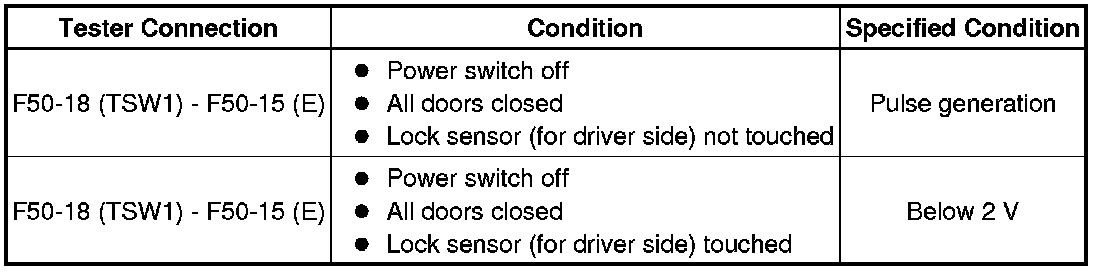 (a) When the door control switch on the master switch assembly is operated, check that the doors unlock and lock according to switch operation Operation Check.