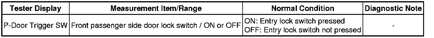 - Front Passenger Side Door Entry Lock Function does not Operate
