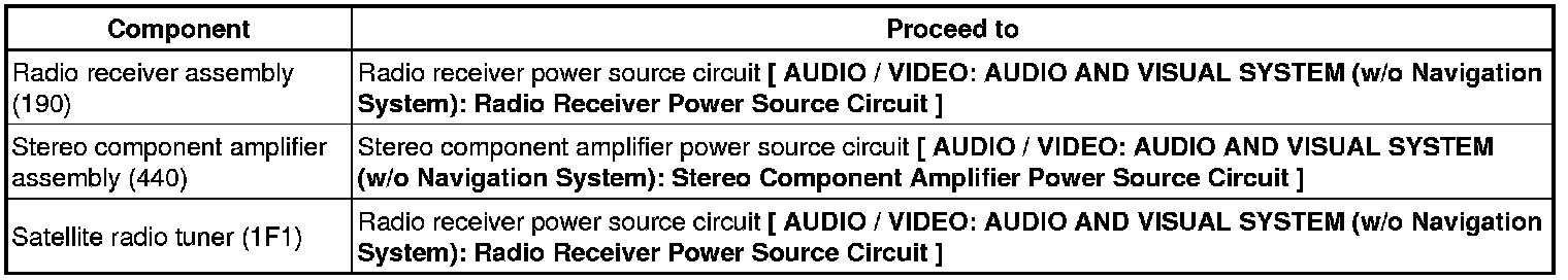 The satellite radio tuner is built into the radio receiver assembly. If there is a problem between the satellite radio tuner and radio receiver assembly, replace the radio receiver assembly.