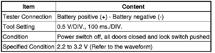 When measuring the battery voltage, while operating the lock switch of a door handle, bring the electrical key transmitter within the entry operating range to perform the measurement. For the entry operating range, refer to System Description System Description.