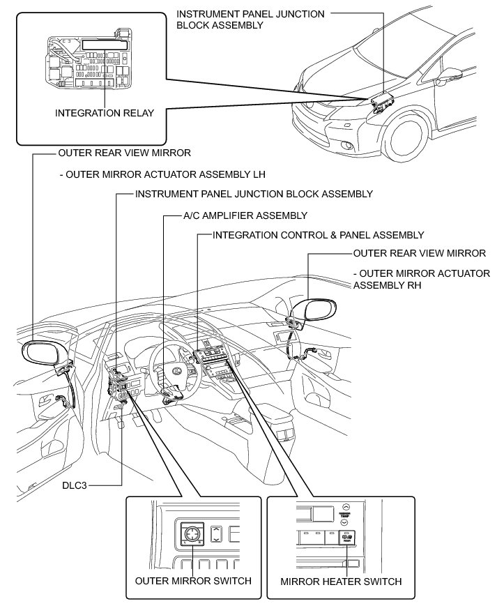 MIRROR (EXT): POWER MIRROR CONTROL SYSTEM (w/o Memory): PARTS LOCATION