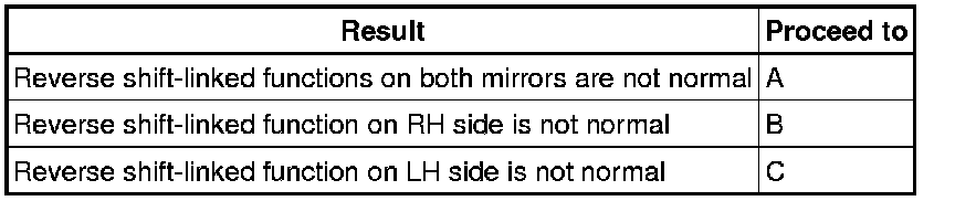 MIRROR (EXT): POWER MIRROR CONTROL SYSTEM (w/ Memory): Reverse Shift-linked Function of Power Mirrors does not Operate