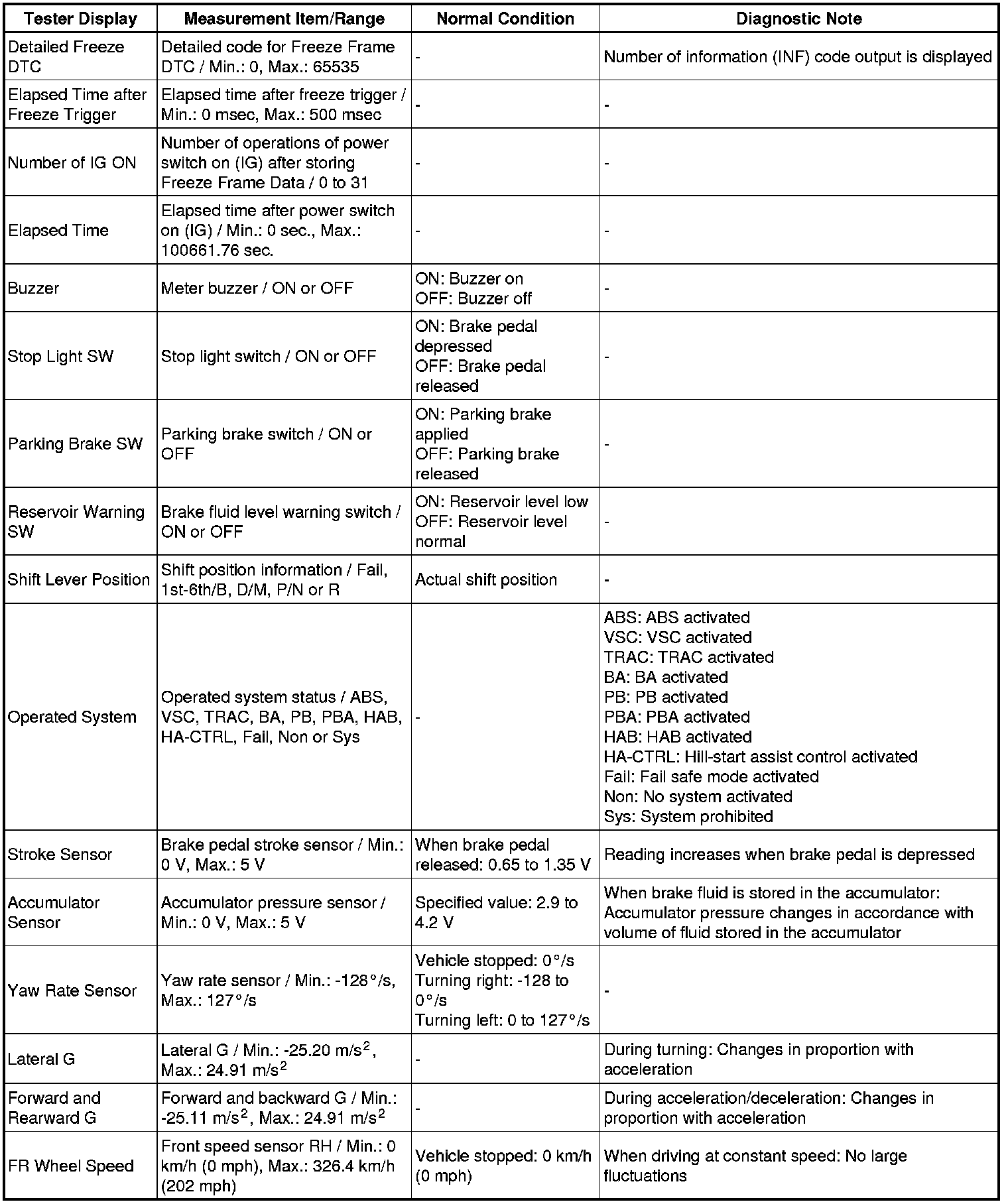 (c) For DTCs stored in the skid control ECU, information (INF) codes that are contained in the Freeze Frame Data can be displayed on the Techstream.