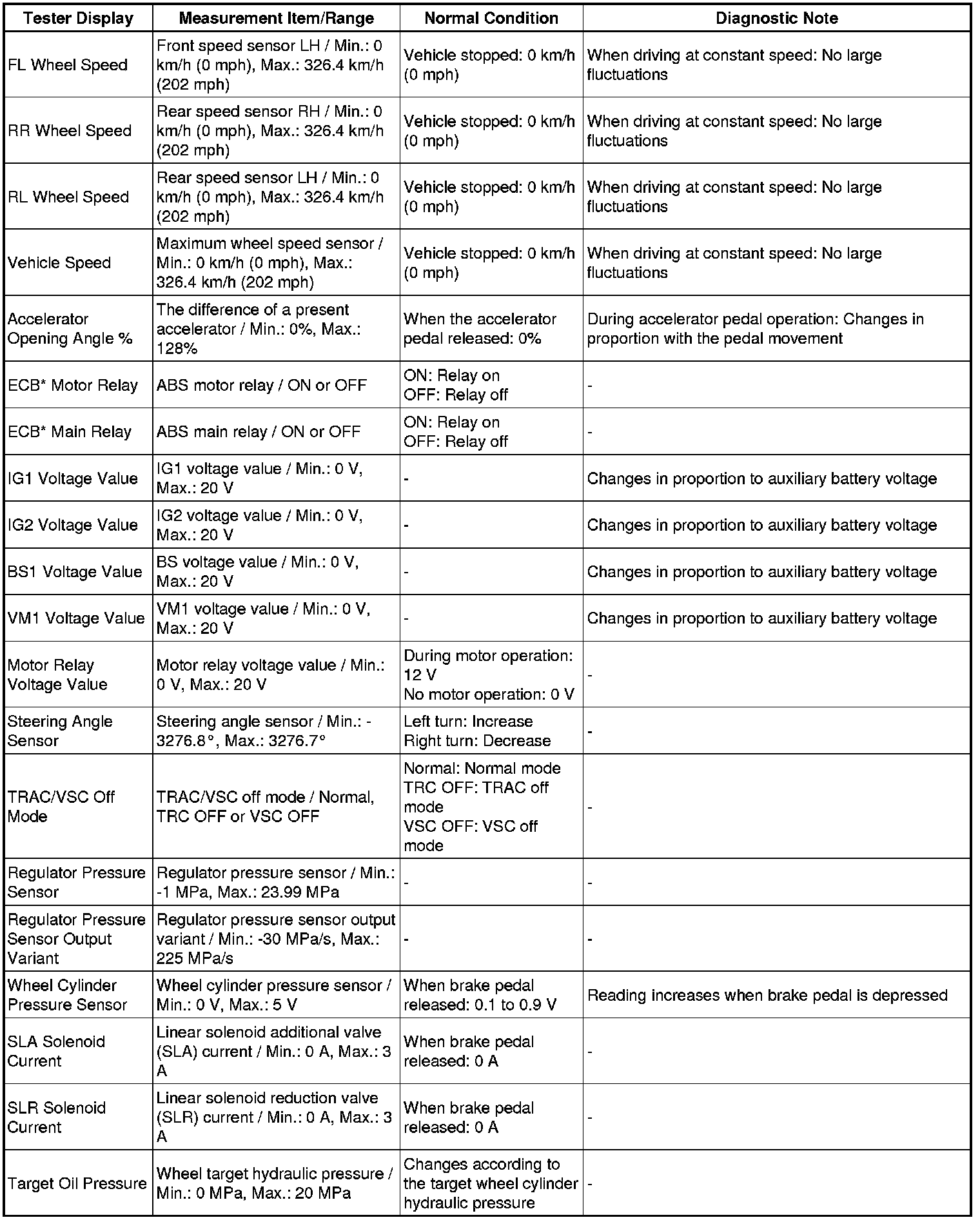 (a) Whenever an ABS, VSC or electronically controlled brake system DTC is detected, the skid control ECU stores the current vehicle (sensor) state as Freeze Frame Data.