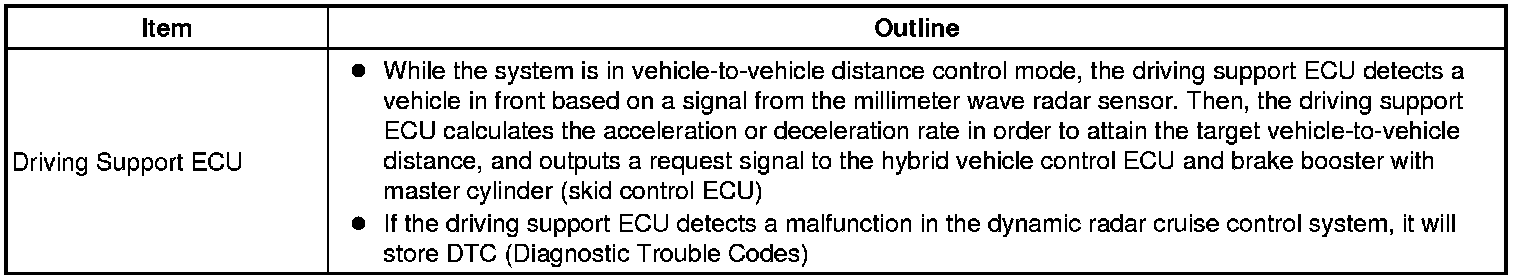 (d) The millimeter wave radar sensor and the driving support ECU control the system while vehicle-to-vehicle distance control mode is operating, and send signals to each actuator and ECU.