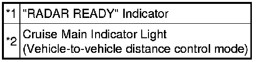 * Vehicle-to-vehicle distance control mode is always selected when starting up the dynamic radar cruise control system (cruise main indicator light and "RADAR READY" indicator come on).