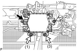 (b) Tighten the 3 nuts in the order shown in the illustration to install the millimeter wave radar sensor assembly.