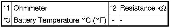 If the resistance is not within the specified range, replace the battery thermometer sensor.